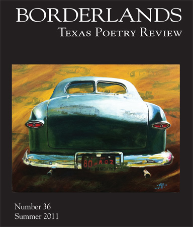 Edited by Judy Jensen, Borderlands’ upcoming summer issue features poetry, reviews and an art series, ‘Rear View’ paintings of vintage cars by New York-based artist Gwendolyn. Poets featured in the new issue include Joe Ahearn, Marian Aitches, Malachi Black, Jenny Brown, Cyrus Cassells, Patrick Ryan Frank, Lyn Lifshin, Katherine Durham Oldmixon, Phil Pardi, Leanna Petronella, Roger Reeves, JeFF Stumpo, Scott Wiggerman and Laurie Saurborn Young, among many others.